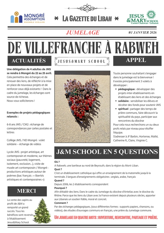 Des nouvelles du jumelage entre Mongré Assomption et la Jesus&Mary Scool à Rabweh, au Liban, dans le cadre du jumelage entre les diocèses de Lyon et d'Antélias.