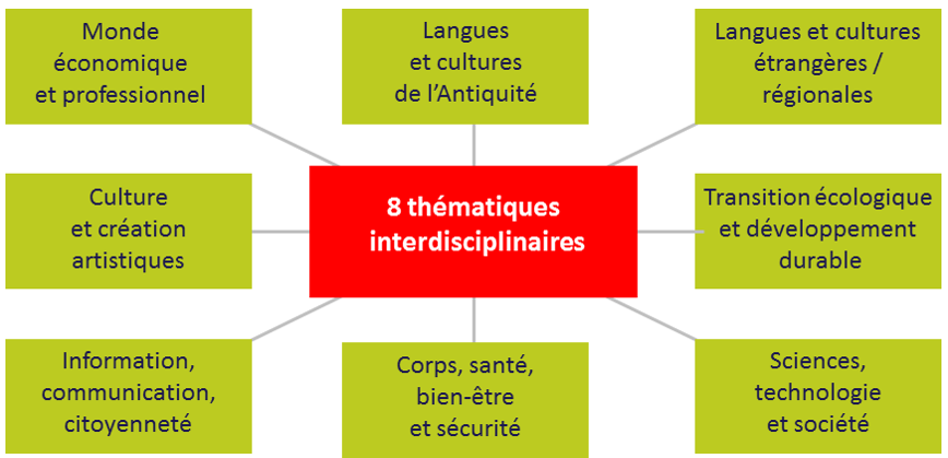 Les élèves doivent avoir, au cours du cycle 4, étudier 6 thématiques parmi les 8 officielles.