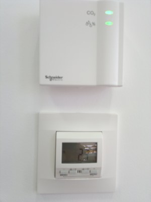 Installation d'un réseau KNX (standard domotique pour la gestion technique du bâtiment) par Jean-Yves DUCHE responsable technique de Mongré : il s’agit d’un réseau permettant de centraliser sur un seul ordinateur les régulations du chauffage (heures de mise en service, arrêts), de l’électricité (mise hors/en service des lumières et alimentations électriques), et d’autres applications futures (volets roulants, détection de présence, alarmes…). Cet outil permet d’avoir des retours d’informations (toujours centralisés sur le même ordinateur) très importants pour l’amélioration de la gestion du bâtiment : historique de la température dans les classes sur une journée, mais aussi taux de CO2 (gaz carbonique) et taux d’humidité.