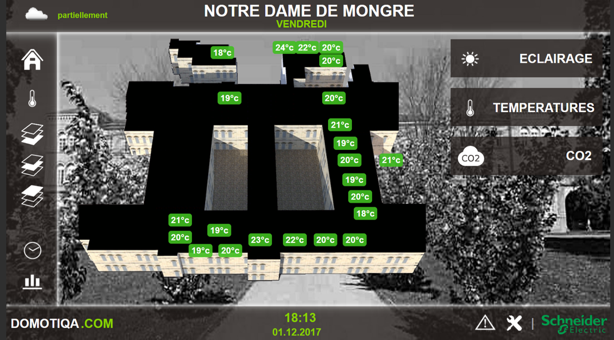 - Rénovation des armoires électriques avec installation d'un système domotique permettant de réguler le chauffage et la lumière : le tout centralisé dans un outil applé "web-serveur".