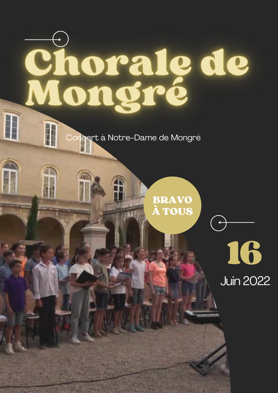 Le 16 juin 2022, les élèves de la Chorale de Mongré ont pu se produire devant familles et amis au sein de Mongré, pour leur concert annuel. Au programme de cette deuxième édition, des chansons de Charles Trénet, Jean-Jacques Goldman, Barbara ou encore des Beatles.