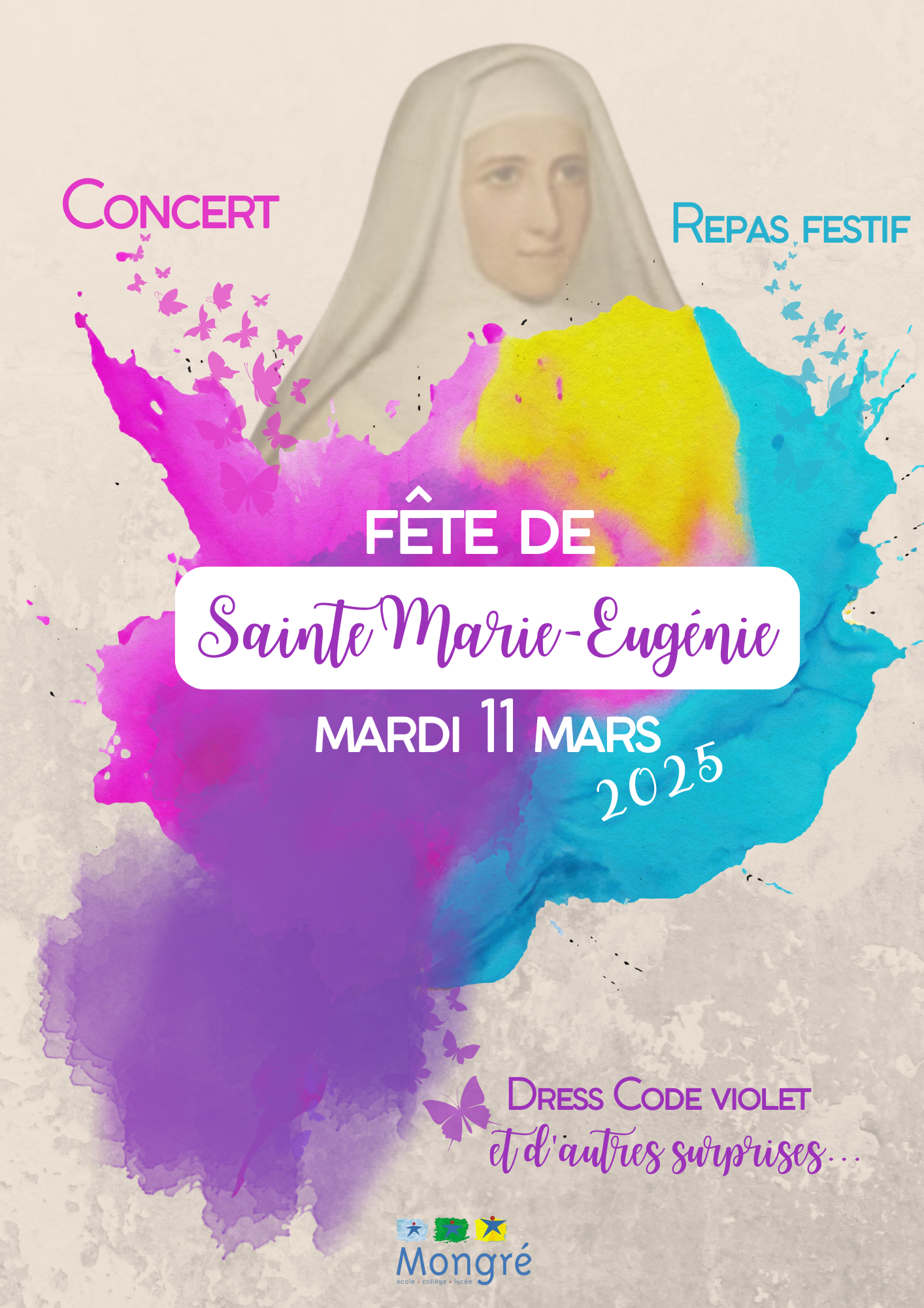 Le mardi 11 mars 2025, nous avons fêté la fondatrice de l'Assomption, Sainte Marie-Eugénie. Au sein de tout l'ensemble scolaire, des animations ont été organisées pour petits et grands afin de rendre hommage à celle qui nous inspire au quotidien à Mongré. "Chacun de nous a une mission sur Terre !" - Ste Marie-Eugénie