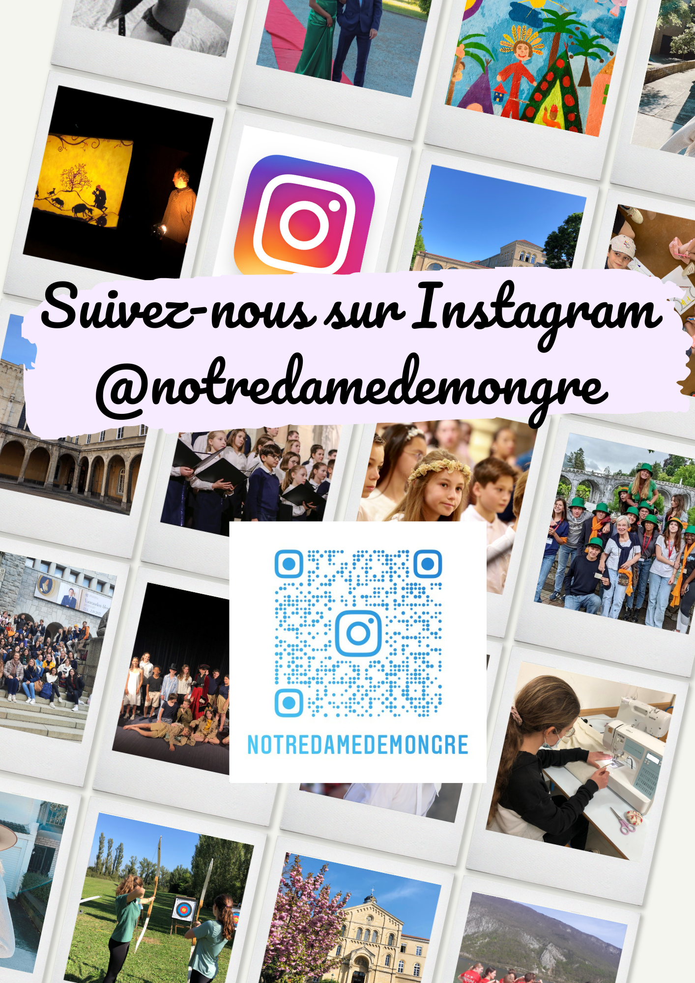 Notre-Dame de Mongré a son compte Instagram ! Abonnez-vous à @notredamedemongre pour être informés des actualités de l'établissement et découvrir tout ce que nous vivons durant l'année scolaire. N'hésitez pas à nous envoyer des messages et commenter nos publications. Nous avons hâte de vous lire !