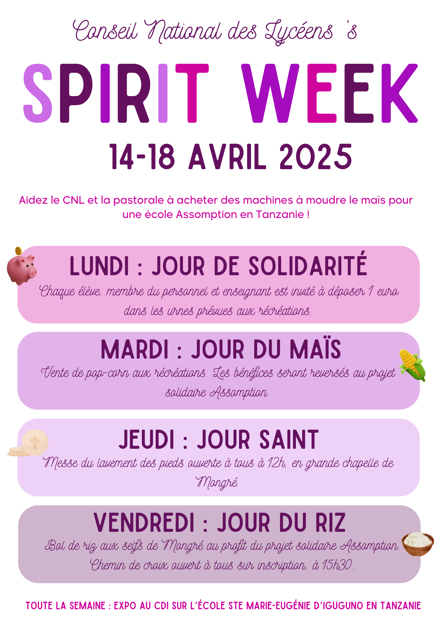 A Mongré, les élèves du CNL ont organisé une Spirit Week solidaire en avril, afin de récolter des fonds. Et ça a marché : en tout, ce sont plus de 6000 euros qui ont été reversés à Assomption France pour ce projet solidaire en Tanzanie. Merci à tous !